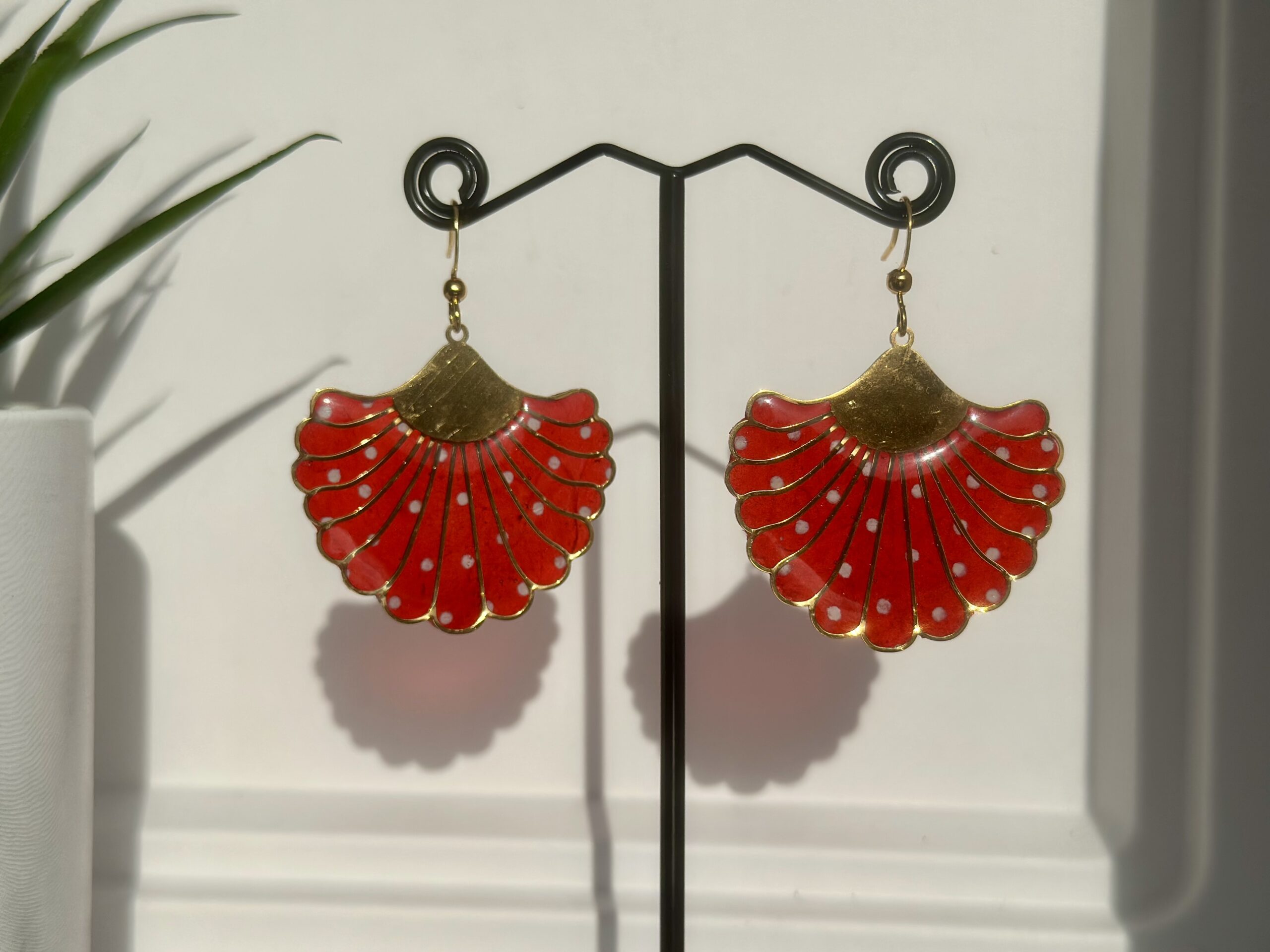 Leur design raffiné mêle la douceur du Papier Népalais rouge à pois, à la brillance de l’acier inoxydable doré, évoquant la légèreté de la nature et l’élégance des créations artisanales. Le papier népalais est recouvert d’une fine couche de résine de protection.