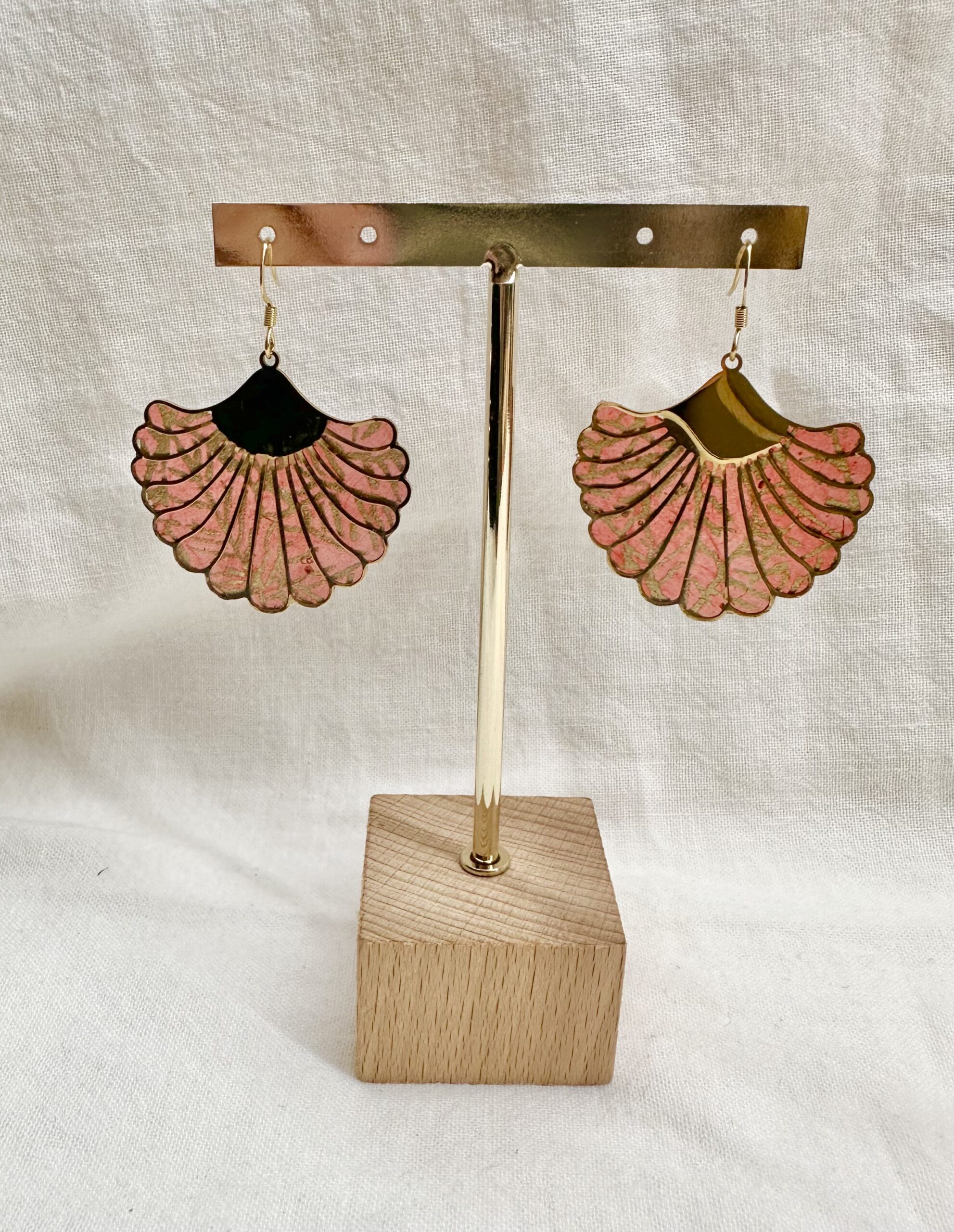 Leur design raffiné mêle la douceur du Papier Népalais floral rose orangé à la brillance de l’acier inoxydable doré, évoquant la légèreté de la nature et l’élégance des créations artisanales. Le papier népalais est recouvert d’une fine couche de résine de protection.