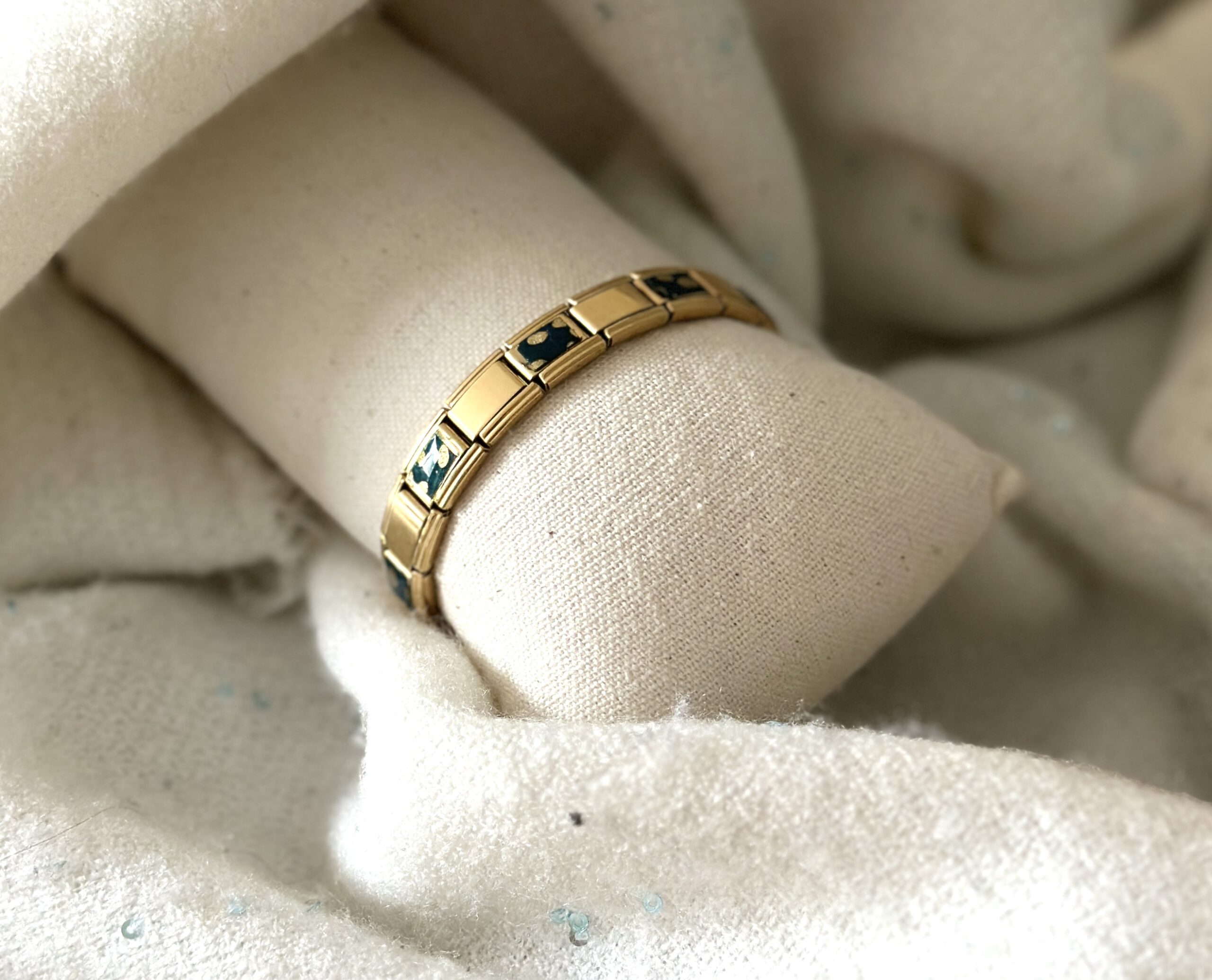 Apportez une touche d’originalité et d’élégance à votre poignet avec ce bracelet clip à maillons italiens, revisité et décoré à la main.